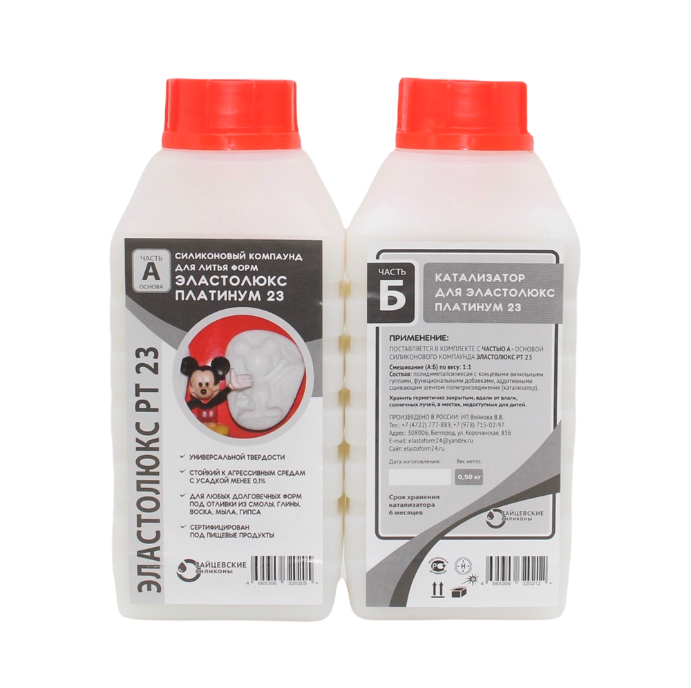 Платиновый силикон Эластолюкс Платинум 23 ― безусадочный, стойкий и нетоксичный силикон для форм с универсальной твердостью. Силикон на платиновом катализаторе Эластолюкс Платинум 23 ― мягче, платиновый силикон Эластолюкс Платинум 33 ― тверже! Платиновый силикон идеален для крупных изделий благодаря своей безусадочности! При работе с пластиками нужна разделительная смазка. Выходят все пузыри даже без использования вакуумной камеры. Силиконы на платиновой основе применяются там, где важны стойкость к агрессивным средам (для отливок из пластиков, полиуретанов, полиэфирных, эпоксидных и других смол, для щелочей), безусадочность (при изготовлении больших изделий), отсутствие запаха (для пищевых продуктов) Платиновый силикон Эластолюкс Платинум предназначен для изготовления любых сложных высокоэластичных долговечных форм: для искусственных камней, мыла, свечей, смол, гипса, парафинов, полимерной глины и пищевых продуктов, мастики и вайнеров.Технология работы с платиновым силиконом: